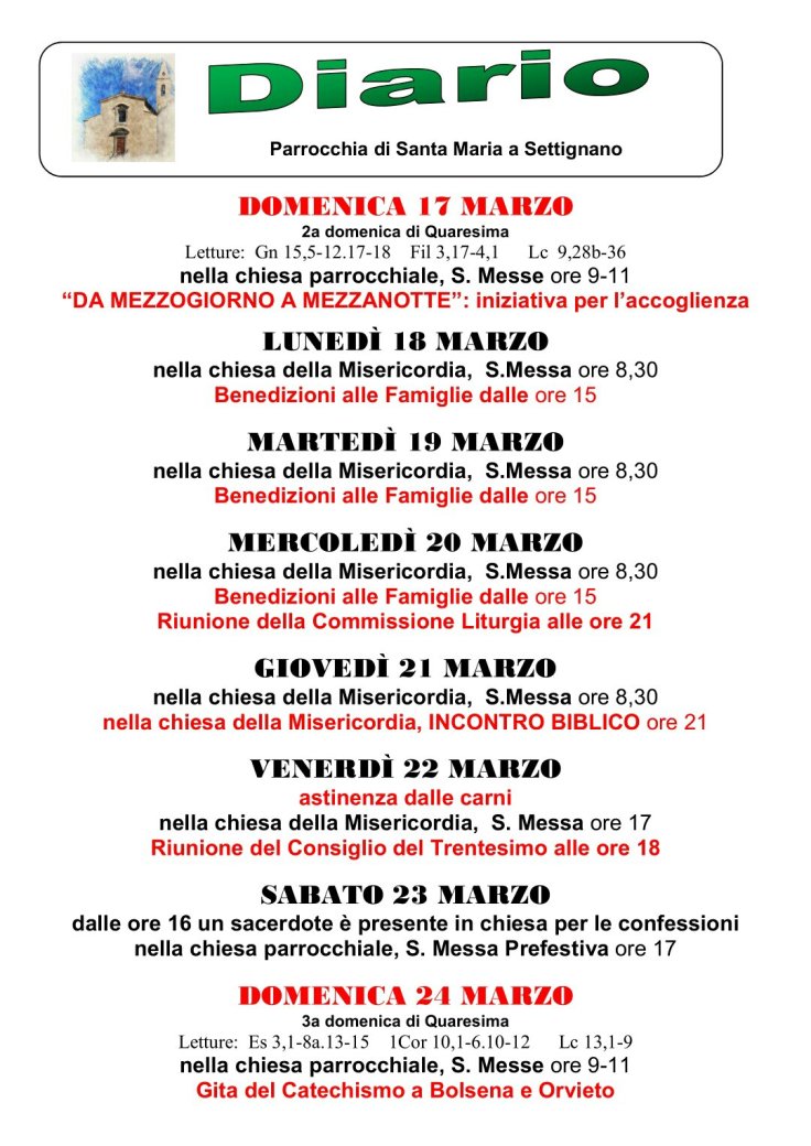 Settimana dal 17 al 24 Marzo 2019