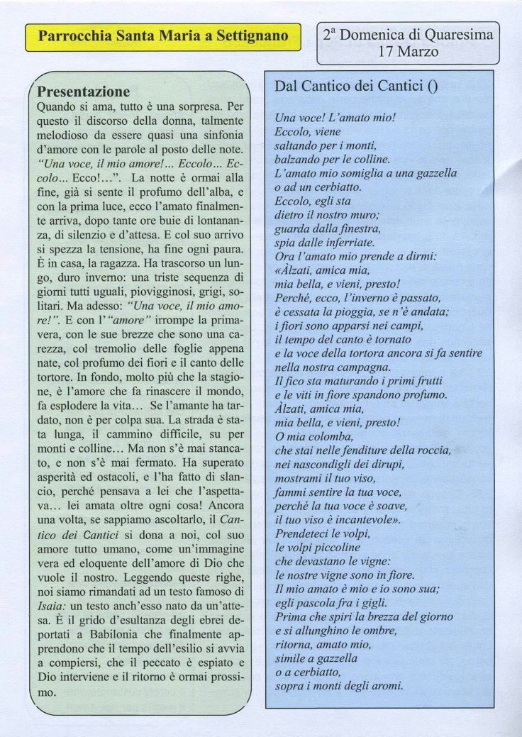 Insieme al Cantico dei Cantico. Seconda domenica :