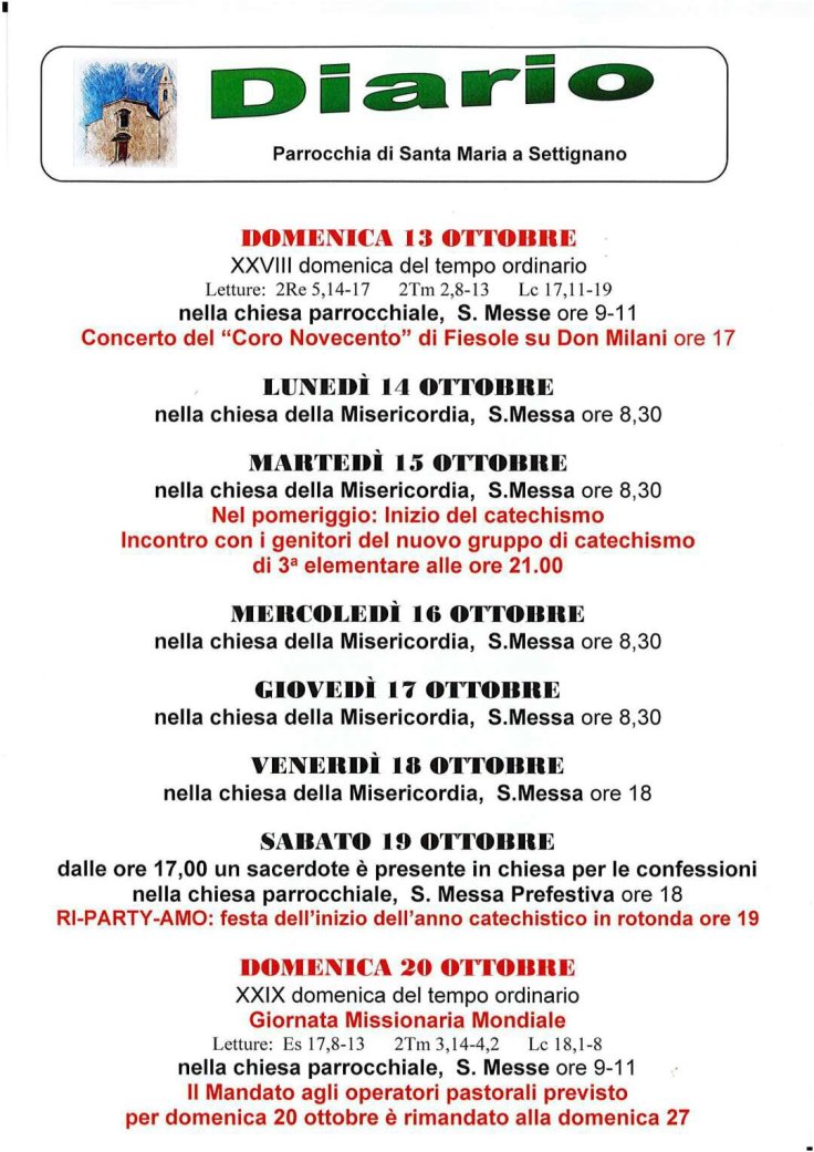 Diario dal 13 al 20 Ottobre