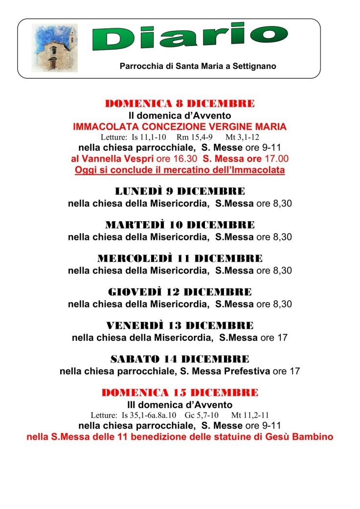 Diario settimana 9-13 dicembre 2019