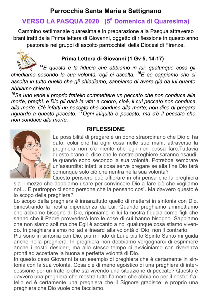 Proponiamo anche per questa 5° Domenica di Quaresima la preghiera verso la Pasqua :