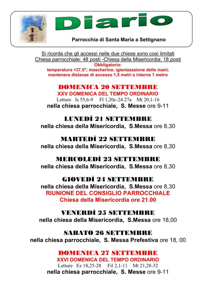Diario parrocchiale 20-27 Settembre 2020
