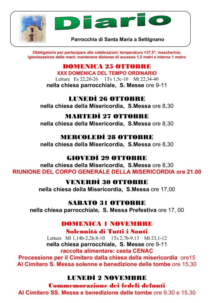 Diario parrocchiale 25 Ottobre – 1 Novembre 2020