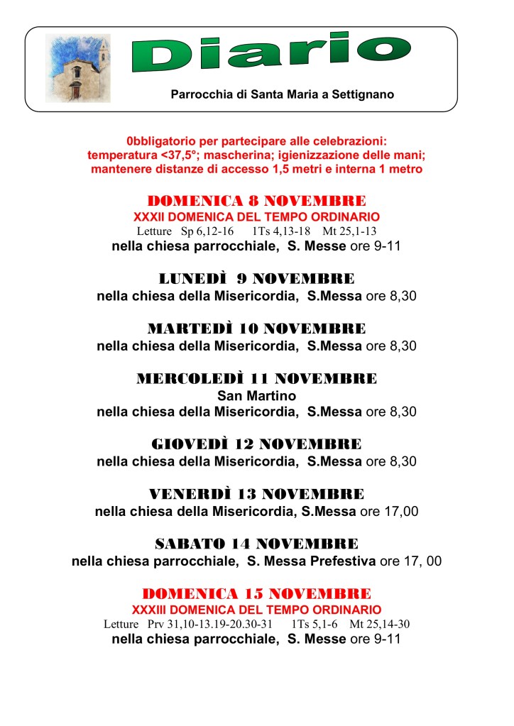 Diario parrocchiale 8-15 Novembre 2020