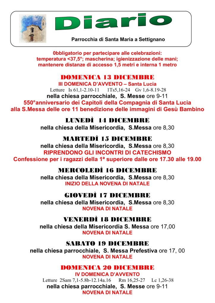 Diario parrocchiale 13-20 Dicembre 2020