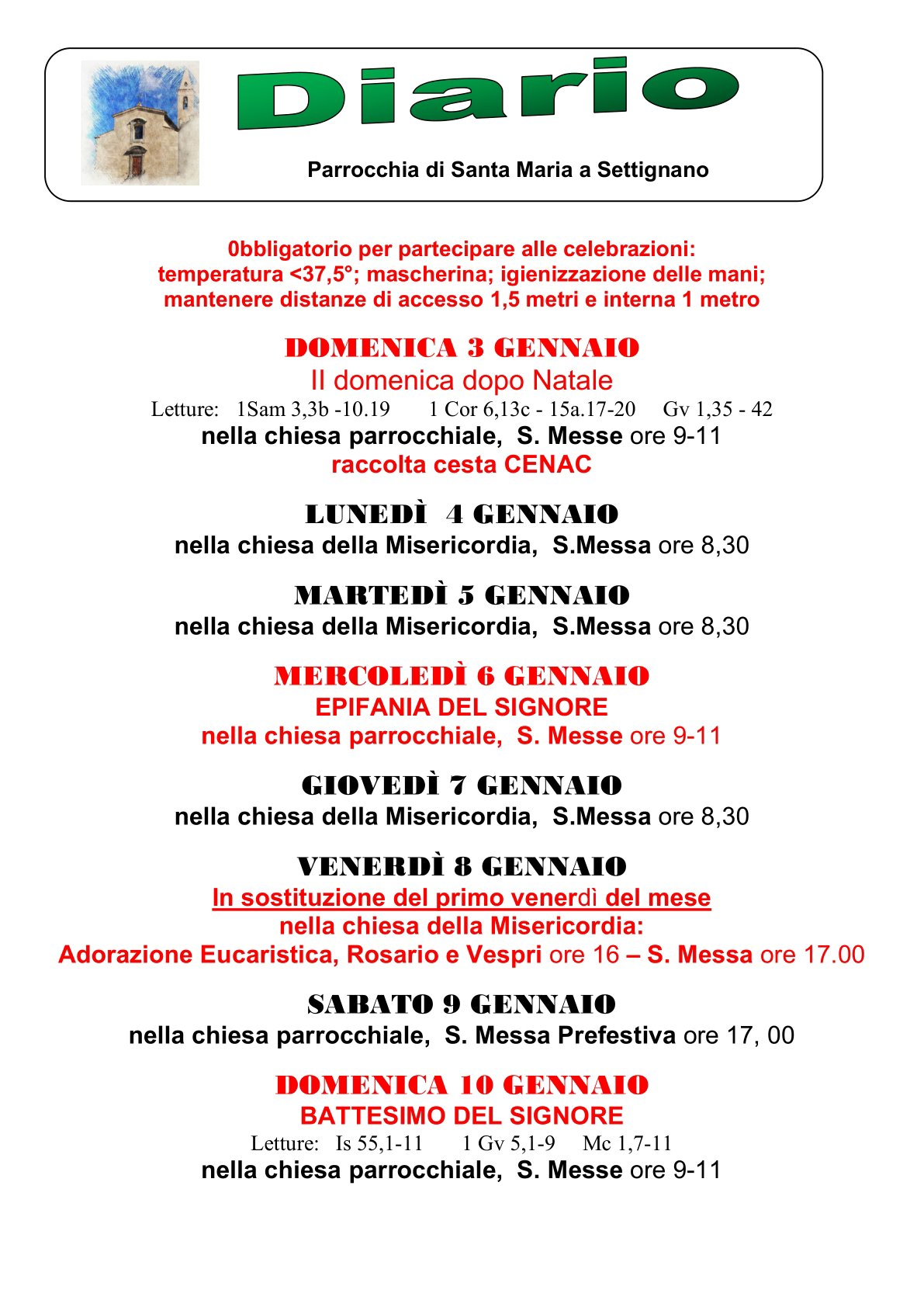 Diario parrocchiale 3-10 Gennaio 2021