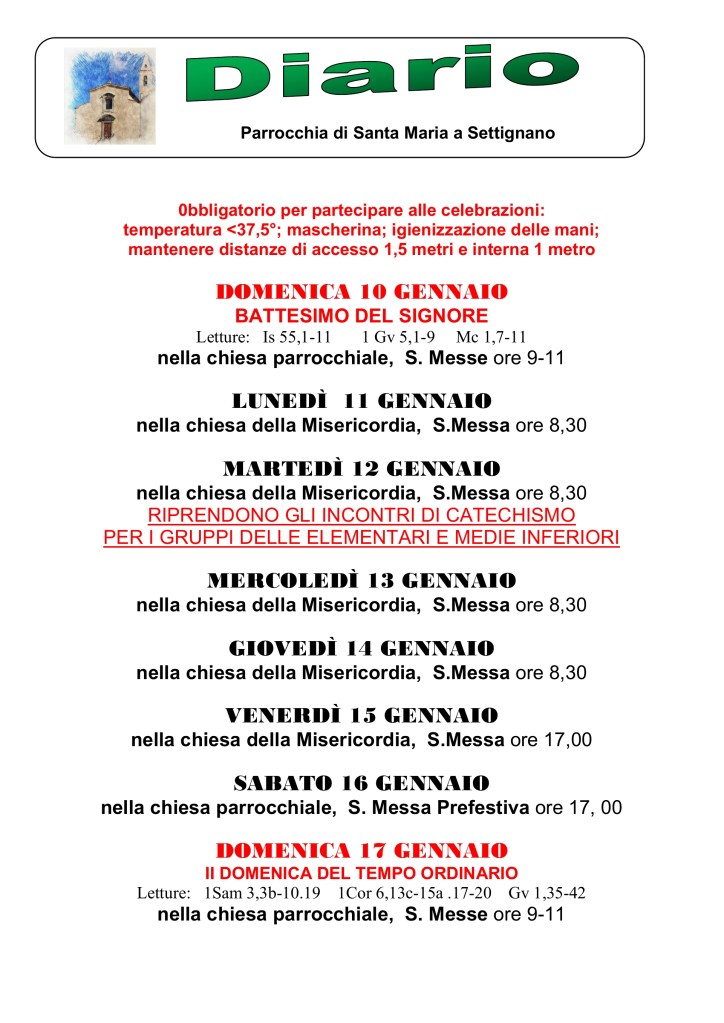 Diario parrocchiale 10-17 Gennaio 2020