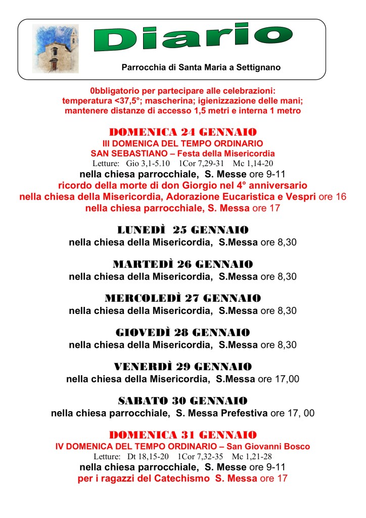 Diario parrocchiale 24-31 Gennaio 2021