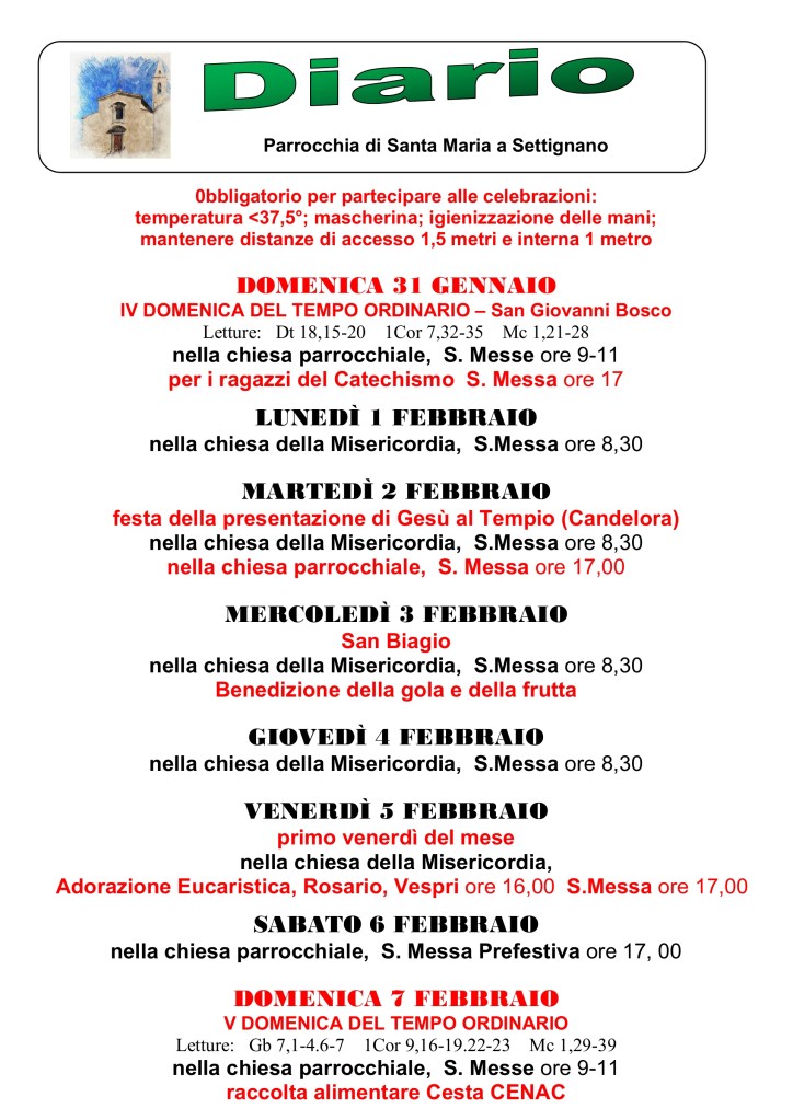 Diario parrocchiale 31 Gennaio – 7 Febbraio 2021