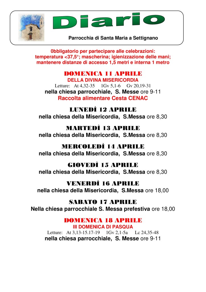 Diario parrocchiale 11-18 Aprile 2021