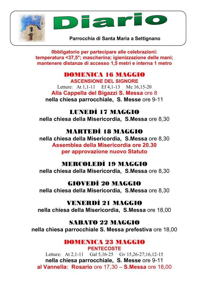 Diario parrocchiale 16-23 Maggio 2021