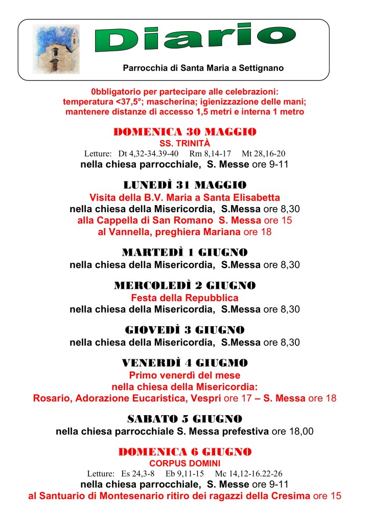Diario parrocchiale 23 Maggio – 6 Giugno 2021