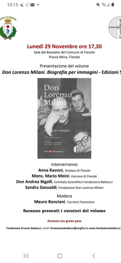 LUNEDI 29 NOVEMBRE ORE 17.30 – COMUNE DI FIESOLE – Sala del Basolato : Presentazione del libro ” DON LORENZO MILANI – BIOGRAFIA PER IMMAGINI”
