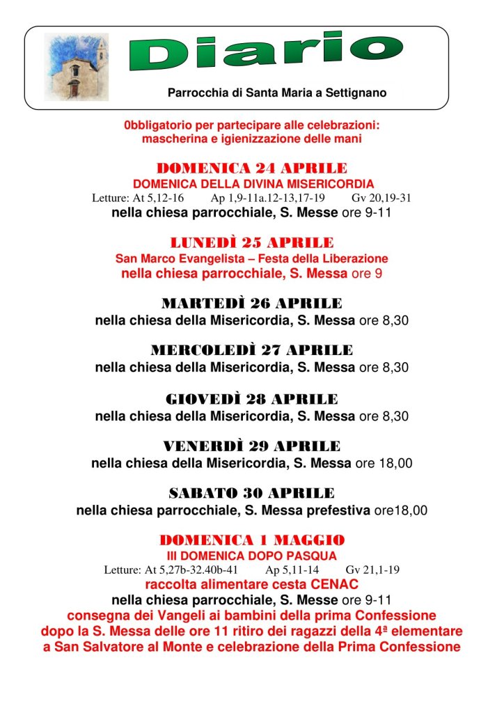 Diario Parrocchiale 24 Aprile – 1 Maggio 2022