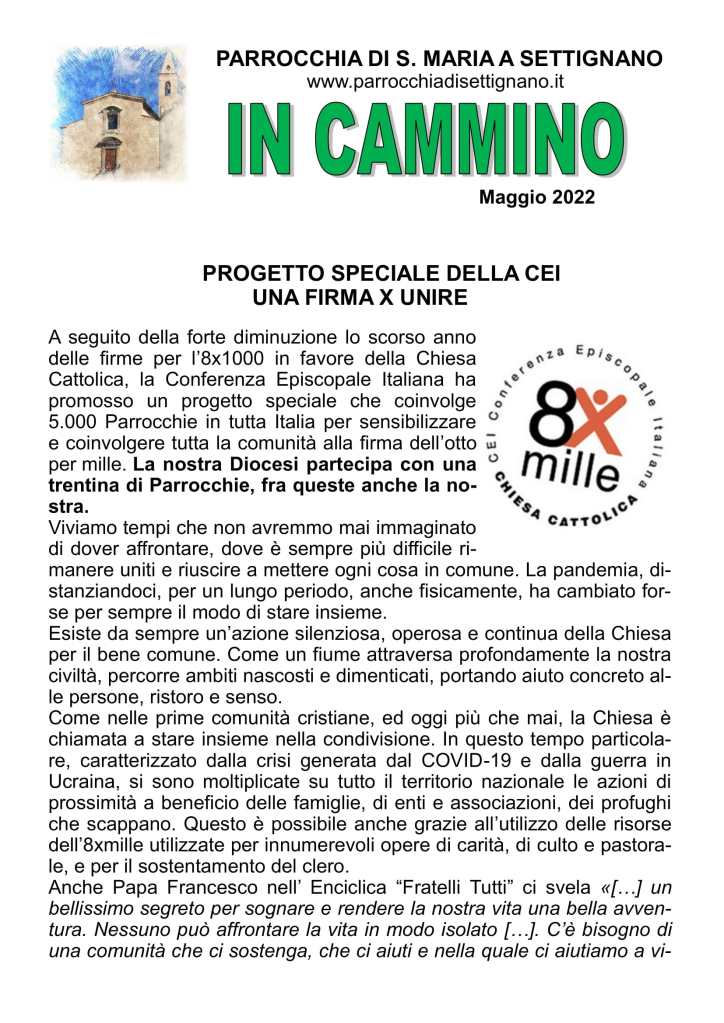 Chi volesse scaricare il PDF del foglietto “In Cammino” del mese di Maggio 2022 può cliccare sul link sottostante :
