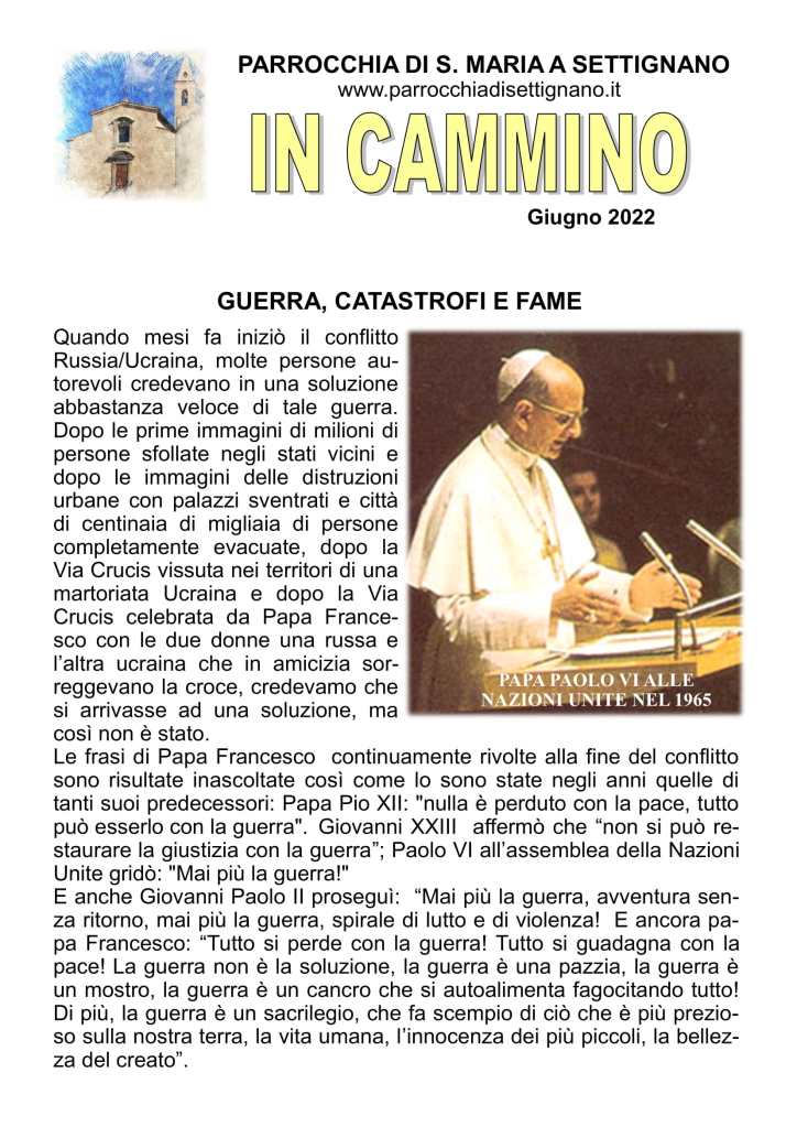 Chi volesse scaricare il PDF del foglietto “In Cammino” del mese di Maggio 2022 può cliccare sul link sottostante :