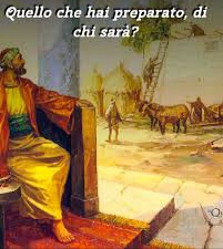La prima lettura, l’overture del libro del Qoelet, ci invita ad operare un discernimento e a farci domande sul senso stesso della vita. Non tutto ciò che troviamo nel mondo ed entra in contatto con la nostra vita è buono. Spesso il praticare certe esperienze o abitudini comporta il cadere in situazioni insidiose che sono capaci di attrarci così tanto da rubarci completamente il cuore. Nonostante queste dinamiche attrattive non dobbiamo evadere dal mondo, dobbiamo darci delle priorità, costruire e difendere quella scala dei valori fatta di amore e di bene, conseguenze dell’evento pasquale consegnateci nel Battesimo. Con il Battesimo siamo divenuti creature nuove, arricchiti dalla novità di Cristo; siamo stati indirizzati a vivere la nostra vita mettendo Cristo al centro e non noi stessi. Se mettiamo al centro noi stessi sarà facile cadere in tutte quelle trappole che il male ci tende, sarà facile essere affascinati dalle sole cose che ci procurano piacere, ma che ci consumano dentro tanto da non farci più ragionare e da metterci in conflitto gli uni gli altri facendoci perdere il senso di tutto, compresi noi stessi. Queste riflessioni emergono dalla seconda lettura che anche ci mette in guardia da ciò che è estremamente pericoloso: dalle immoralità sessuali alla cupidigia. Proprio quest’ultima costituisce l’argomento trattato da Gesù nel Vangelo prendendo spunto da una disputa su una eredità. Sono spesso queste dispute che ancora oggi creano grandi divisioni all’interno delle famiglie mettendo tutti contri tutti. Ragioniamo al contrario del Vangelo: viviamo come se fossimo eterni ma non pensiamo affatto all’eternità, anzi non pensiamo affatto a Dio, ma solo a noi stessi. Mentre il Vangelo ci ricorda che siamo (potenzialmente) eredi dell’eternità e che tutto ciò che costituisce questa vita è relativo ad essa. La vita “non dipende da ciò che si possiede” ma da tutto ciò che ci arricchisce presso Dio. La vita non è garantita dal possedere le cose. Se abbiamo dei beni, questi vanno utilizzati e orientati in funzione del nostro rapporto con Dio. Non a caso, nella parabola, Dio (caso esclusivo che si contempli in una parabola Dio) si rivolge a quell’uomo definendolo “stolto” perché si tratta di una persona che parla e ragiona con se stesso, senza confrontarsi con nessuno. La vita va vissuta orientando lo sguardo alle cose di lassù, altrimenti le cose di quaggiù svincolate dal nostro rapporto con Dio metteranno in luce la loro povertà e bassa consistenza; ci faranno dire come il Qoelet che la vita è vana. La Pasqua ci aiuta invece a dire il contrario. Occorre fidarsi di quelle parole pronunciate da Gesù qualche capitolo prima che invitano a “perdere la propria vita” per Lui, donandosi, così da trasformare tutto: la morte in vita e il vuoto in pienezza.