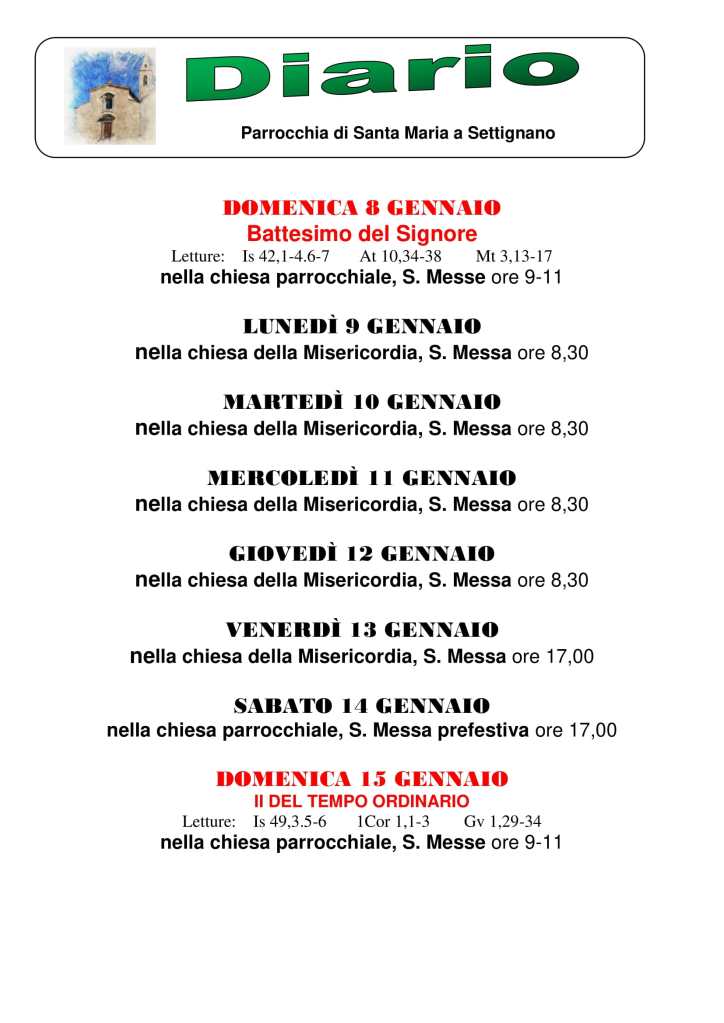Diario settimanale 8-15 Gennaio 2023