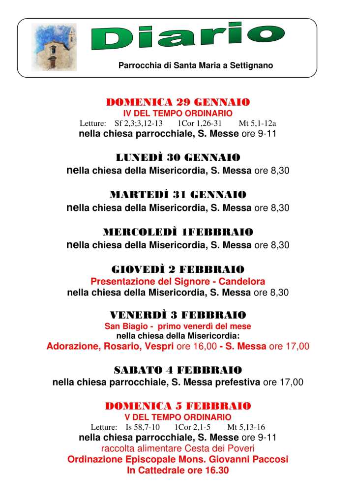 Diario parrocchiale 29 Gennaio – 5 febbraio 2023