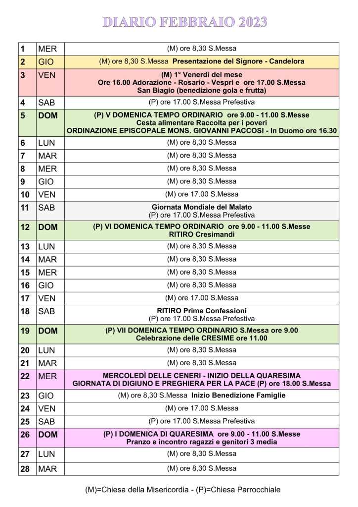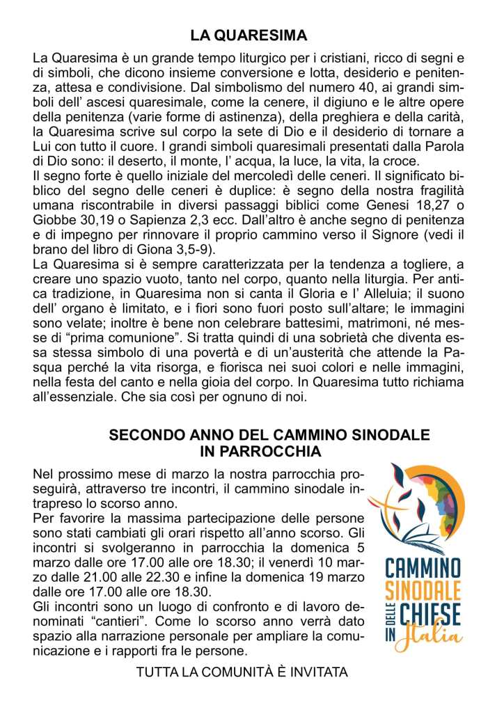 Potete scaricare il nostro foglietto mensile anche in formato PDF dal link seguente :