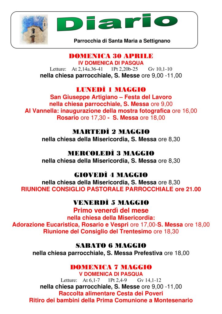 Diario parrocchiale 30 Aprile – 7 Maggio 2023
