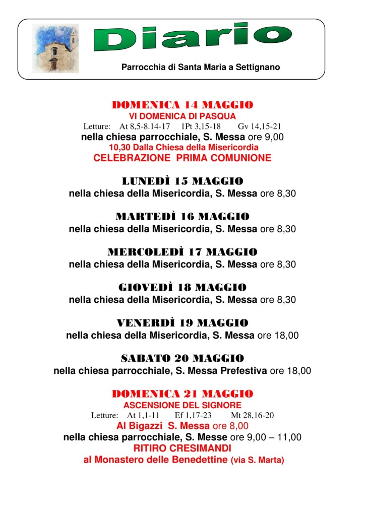 Diario parrocchiale 14-21 Maggio 2023
