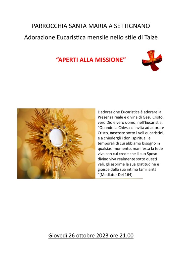 “APERTI ALLA MISSIONE” – Giovedì 26 Ottobre 2023 ore 21.00