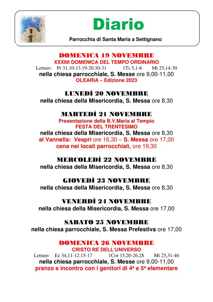 Diario parrocchiale 19-26 Novembre 2023