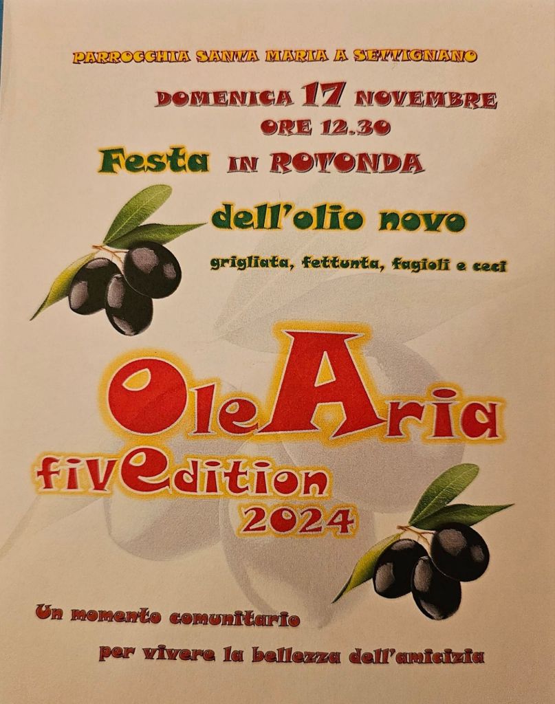 Alcuni scatti della festa dell’olio nuovo che si è tenuta oggi in Rotonda insieme a tanti amici della Parrocchia. Un grazie a tutti gli intervenuti ma soprattutto a tutte le persone che hanno collaborato e lavorato duramente per organizzare questo evento giunto ormai al 5° appuntamento. All’anno prossimo quindi e viva l’olio delle nostre colline settignanesi!