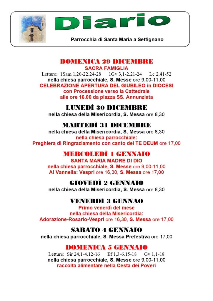 Diario settimanale 29/12 – 3/1