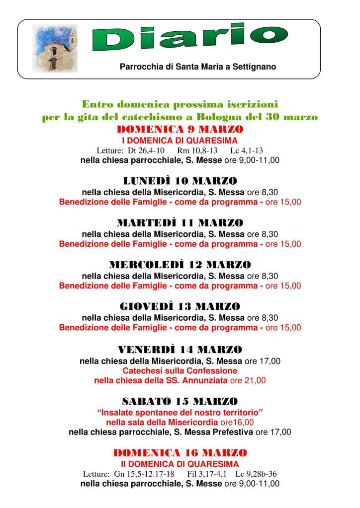 Diario parrocchiale 9-16 Marzo 2025