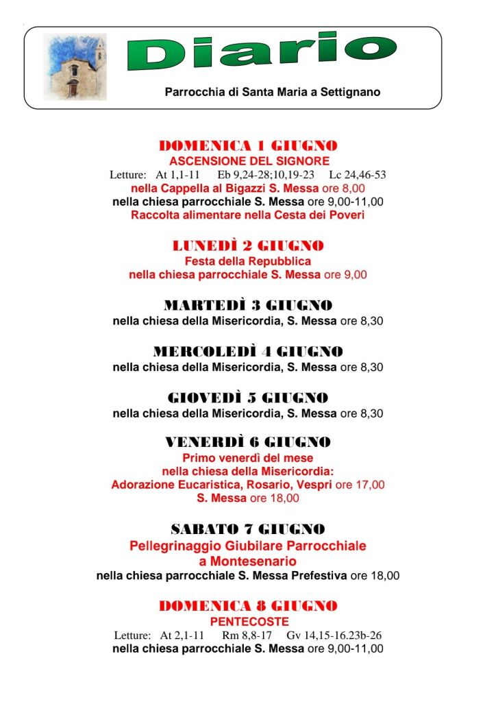 Diario parrocchiale 1-8 Giugno 2025