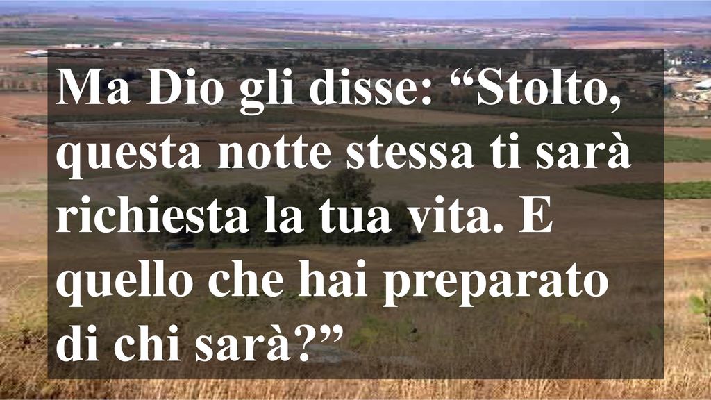 Il tema di questa domenica è assai conosciuto e dibattuto; spesso ci torniamo sopra perché non sempre si raggiunge la convinzione necessaria riguardo il rapporto fra la nostra esistenza e i beni materiali. Spesso questi ultimi accentrano su di loro tante delle nostre attenzioni e ogni volta che ne parliamo cerchiamo di evadere dal tema perché i beni e il denaro esercitano una forte attrazione. Il denaro serve nella vita, ma troppo spesso questa attenzione diventa assoluta. Non si può condurre la propria vita, mantenere la propria famiglia se non vi è denaro sufficiente, per cui è importante gestire i propri beni ma senza che questi ultimi prevalgano, senza che vi si attacchi il nostro cuore, il nostro cuore è per Dio, per le persone che amiamo e dalle quali siamo amati; non deve la ricchezza rubarci il cuore. Dato che anche il lavoro e la propria professione contribuiscono ad ottenere la propria retribuzione, occorre superare quelle mentalità ossessive, oppressive e competitive, cercando di raggiungere un equilibrio affinché gli affetti, soprattutto familiari non vengano mortificati. Le affermazioni del Qoelet (prima lettura) sono nette, non lasciano scampo, eppure non riescono ad intaccare i nostri stili di vita e qui oltre a non prestare ascolto al libro sapienziale pecchiamo anche di antagonismo nei confronti di Dio, andiamo cioè ad affermare una nostra autonomia e supremazia di noi stessi che non esiste, ci mostriamo arroganti e superbi come nel caso del ricco e fortunato protagonista del Vangelo i cui affari lo spronano a pensare egoisticamente solo a se stesso senza un benché minimo pensiero rivolto ai meno fortunati e poveri. Quell’uomo offuscato dalla propria ricchezza non ne comprende di essa il senso, si ritrova da solo e si perde nel suo delirio non mettendo in conto, dato che di conti si parla, il fatto che il tempo non è nelle sue e nostre disponibilità. La morte è il soggetto che dice il limite della vita. Il brano evangelico si conclude con un ammonimento che invita ad arricchirsi solo nei confronti di Dio. Qui la moneta di scambio è la sola che Dio usa e riconosce: l’amore, l’affetto, la carità. Altro che criptovalute o qualsivoglia moneta o metallo prezioso; se non alziamo lo sguardo verso Dio, se, come dice San Paolo non si cercano “le cose di lassù” noi, “già morti”, non saremo ammessi alla gloria eterna. Qui davvero il discorso si fa deciso quando sempre l’apostolo prosegue: “fate morire ciò che appartiene alla terra … immoralità, passioni, cupidigia, idolatria”. Occorre rivedere la realtà dal punto di vista dell’ordine di importanza, distinguere i fini dai mezzi e fare in modo di abbandonare gli stili egoistici imposti da una società e da un mondo altrettanto malato e riconquistare la libertà perduta causata dall’essere sotto il dominio del male. La vera ricchezza consiste nell’ essere parte del progetto di Dio, di essere oggetto del suo interesse, del suo sacrificio, del suo amore. La nostra vita non dipende dai beni. L’esasperazione del possesso non lascia spazio al dono e rimane fuori da ciò che veramente ci arricchisce: la condivisione.