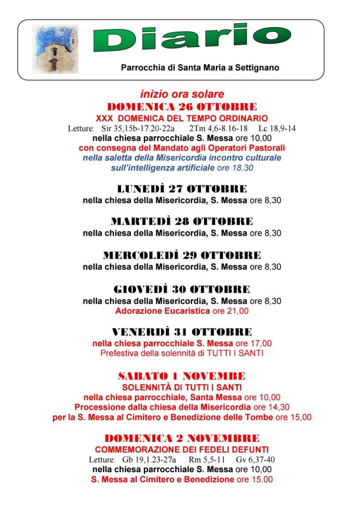 Diario parrocchiale 26 Ottobre – 2 Novembre 2025
