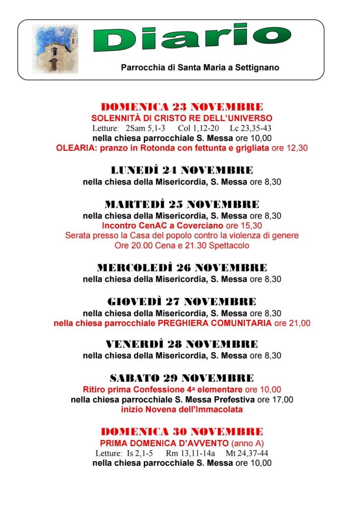 Diario parrocchiale 23-30 Novembre 2025