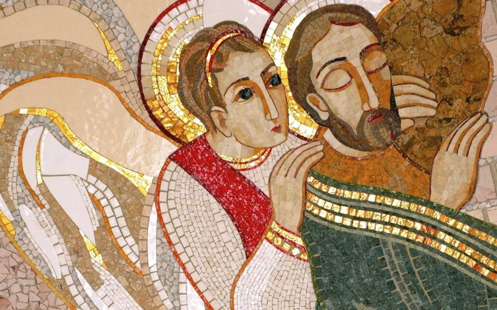 Dopo l’atto di fiducia di Maria, oggi è la volta di Giuseppe nell’accogliere la volontà di Dio, nel non ripudiare Maria come fosse un’adultera ma quale madre del bimbo concepito attraverso l’azione dello Spirito Santo destinato ad essere re e a portare la salvezza all’umanità. I passaggi del coinvolgimento di Giuseppe sono racchiusi in un sogno rivelatore della volontà di Dio. L’esperienza di Giuseppe ci comunica che anche noi facciamo parte del sogno di Dio, il quale ci desidera docili, teneri, misericordiosi come lo sarà Gesù nella sua vita terrena. L’angelo che parla a Giuseppe si esprime come nei confronti di Maria, con quella frase diretta al cuore: “non temere”. In forme più o meno suggestive anche noi siamo raggiunti e chiamati ad assecondare l’agire di Dio che si rivela a noi misteriosamente attraverso segnali seminati nel quotidiano. Il problema oggi sta nel fatto che nessuno sogna quel panorama esteso dell’intera umanità, tale da ottenere quella visione complessiva che riguarda il bene di tutti; spesso consideriamo sogni quelli che sono creati dalla nostra elaborazione mentale e che riguardano esclusivamente noi stessi, in uno spazio ristretto dove c’è posto solo per noi e non per la parola, in questo caso quella di Dio. Accogliendo il consiglio di Dio si inizia a scrivere con la nostra vita una storia che mai avremmo immaginato, costruita attraverso la creatività di Dio, quella capace di trasportarci e coinvolgerci oltre le nostre misure e i nostri ragionamenti, quella che ci manifesta sogni più belli e grandi dei nostri. Quante battute, quanto scherzo intorno alla figura e al ruolo di Giuseppe, quanto poco abbiamo approfondita la sua missione di padre putativo, un ruolo evangelicamente reso sacrosanto per tutti coloro che, pur non essendo biologicamente padri, lo sono nella sostanza e ciò che è meraviglioso, lo sono nel nome di Dio. A Giuseppe vengono affidate due creature da difendere da tutte quelle mentalità distruttive e malvagie che ancora oggi rubano i sogni della salvezza e che ancor peggio ci allontanano da Dio stesso, Lui che ha compiuto il suo passo per venirci a trovare continua ad essere rifiutato. Chi non tiene conto di quella mano protesa verso ciascuno di noi rischia di ritrovarsi nelle condizioni di quel re al quale non interessava niente di Dio; si trattava di Acaz (prima lettura) che non chiese nessun segno a causa del suo orgoglio che lo teneva lontano da Dio, ma nonostante tutto fu lanciata la grande profezia, basata su un segno preciso: la vergine concepirà e darà alla luce un figlio.